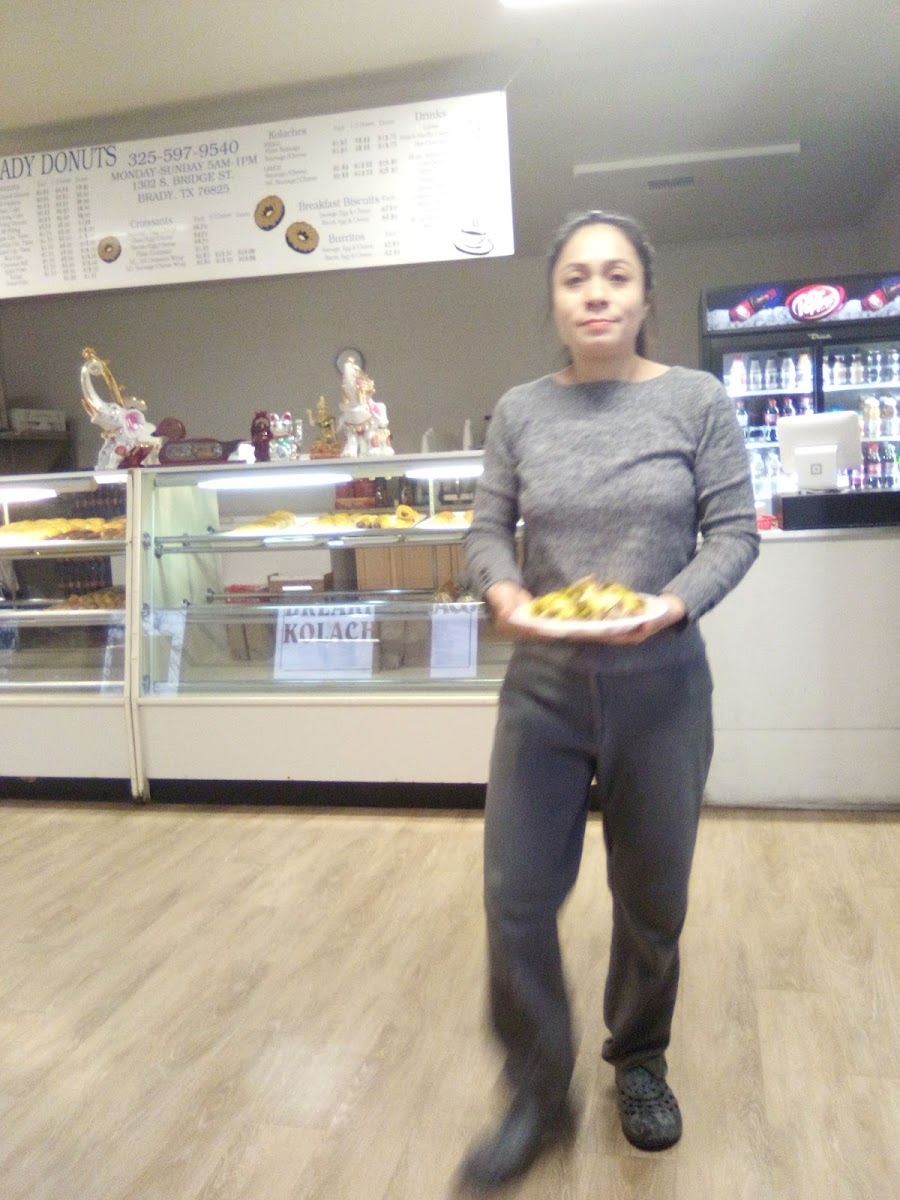 Just drove thru Brady on the way to Montgomery Texas. We saw Brady donuts and stopped. I wanted a filled donut and when my husband got in the car there was 2 free donut holes in the bag!!! Who gives anything free anymore??? It was a breathe of fresh air!!! Give them your business!!!!!